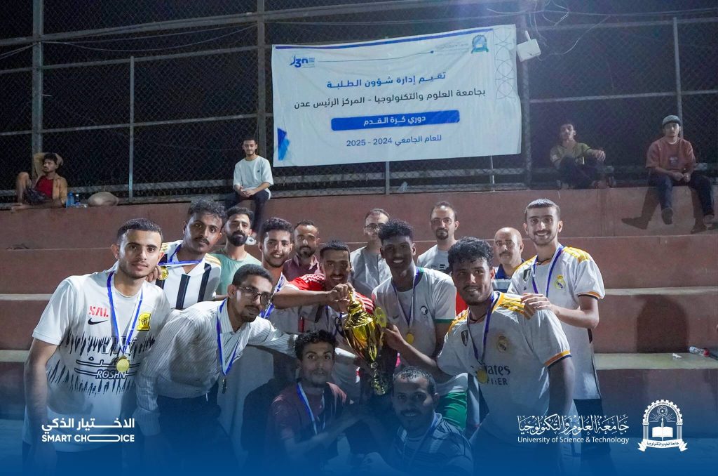 في نهائي كروي مثير: فريق هندسة معمار – مستوى رابع يحرز كأس بطولة دوري كرة القدم للعام الجامعي 2024-2025 بجامعة العلوم والتكنولوجيا – عدن على حساب فريق مختبرات طبية – مستوى رابع