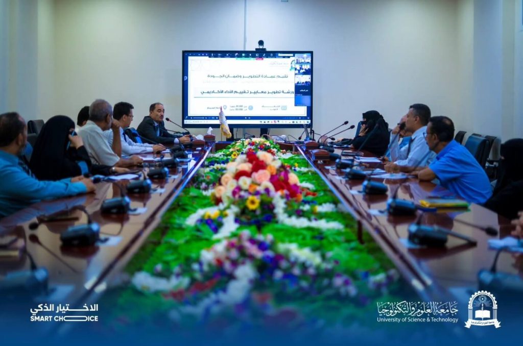 نظّمت عمادة التطوير وضمان الجودة بجامعة العلوم والتكنولوجيا – المركز الرئيس عدن، يوم الأربعاء الموافق 8 أكتوبر 2025م، ورشة عمل بعنوان: “تطوير معايير تقييم الأداء الأكاديمي”.