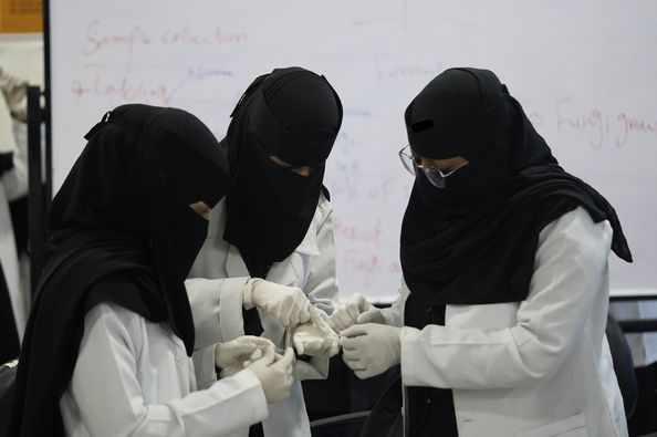 Sebagai bagian dari kegiatan kemahasiswaan unggulan yang diselenggarakan oleh Departemen Ilmu Kesehatan, mahasiswa tingkat ketiga jurusan Sarjana Laboratorium Kedokteran melaksanakan kegiatan ilmiah dan praktek pada mata kuliah Mikologi Medis, di bawah pengawasan guru mata pelajaran tersebut, Dr. Abeer Saleh Baflaha.