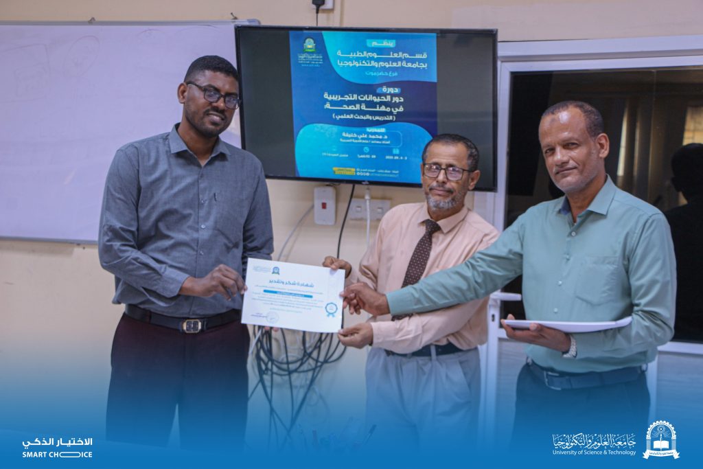 نظم قسم العلوم الطبية بجامعة العلوم والتكنولوجيا – فرع حضرموت دورة تدريبية متخصصة بعنوان: “دور الحيوانات التجريبية في مهنة الصحة: التدريس والبحث العلمي” ( Role of Experimental Animals in Health Professions: Teaching and Scientific Research )،